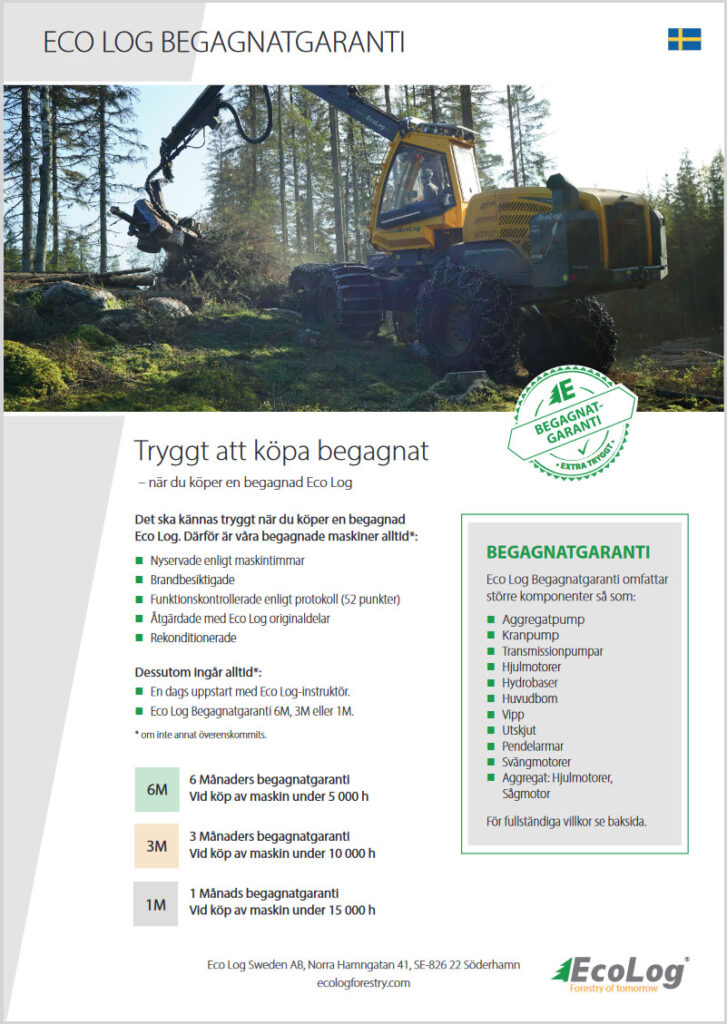 In addition, an advantageous used warranty is always included with a number of free services, which means that you can feel sure that we at Eco Log are there for you both before and after the purchase.